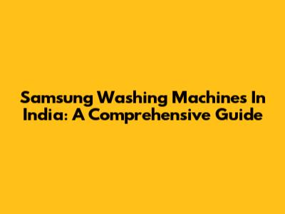 Samsung Washing Machines In India: A Comprehensive Guide