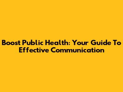 Boost Public Health: Your Guide To Effective Communication