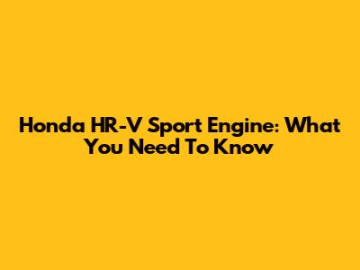 Honda HR-V Sport Engine: What You Need To Know