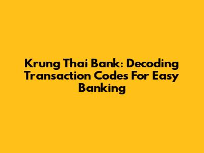 Krung Thai Bank: Decoding Transaction Codes For Easy Banking