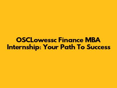 OSCLowessc Finance MBA Internship: Your Path To Success