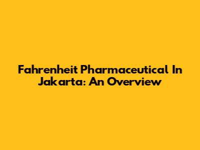 Fahrenheit Pharmaceutical In Jakarta: An Overview