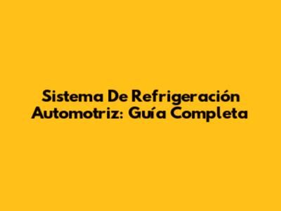 Sistema De Refrigeración Automotriz: Guía Completa
