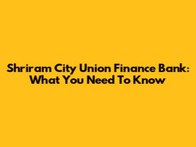 Shriram City Union Finance Bank: What You Need To Know