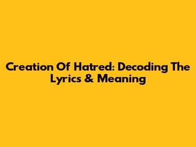 Creation Of Hatred: Decoding The Lyrics & Meaning