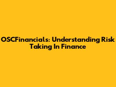 OSCFinancials: Understanding Risk Taking In Finance