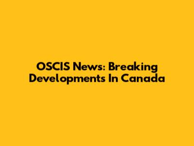 OSCIS News: Breaking Developments In Canada