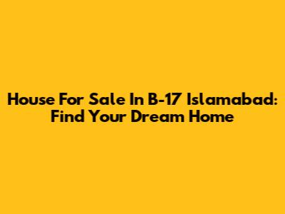 House For Sale In B-17 Islamabad: Find Your Dream Home