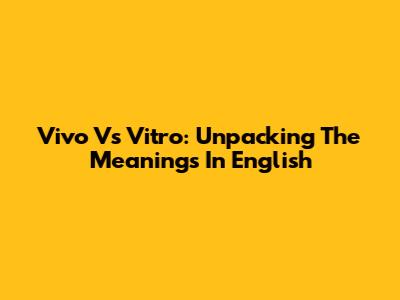 Vivo Vs Vitro: Unpacking The Meanings In English
