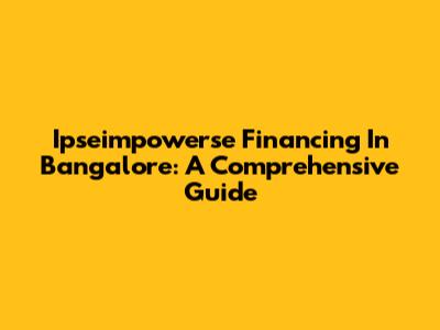 Ipseimpowerse Financing In Bangalore: A Comprehensive Guide