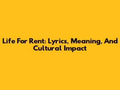 Life For Rent: Lyrics, Meaning, And Cultural Impact