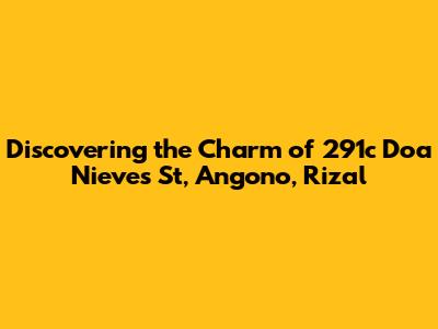 Hey guys! Ever stumbled upon a place that just feels like home? Well, let me tell you about 291c Doa Nieves St in Angono, Rizal. This spot isn't just an address; it's a vibrant slice of life in a town known as the "Art Capital of the Philippines." Let's dive into what makes this location so special and why it might just capture your heart.