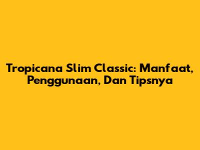 Tropicana Slim Classic: Manfaat, Penggunaan, Dan Tipsnya