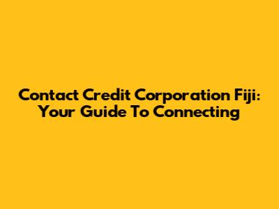 Contact Credit Corporation Fiji: Your Guide To Connecting