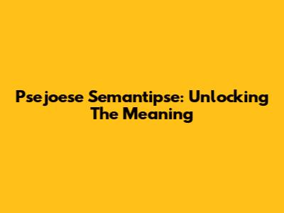 Psejoese Semantipse: Unlocking The Meaning