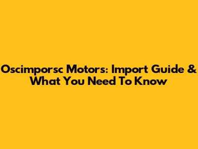 Oscimporsc Motors: Import Guide & What You Need To Know