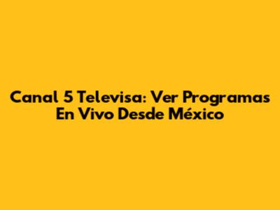 Canal 5 Televisa: Ver Programas En Vivo Desde México