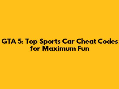 List of GTA 5 Sports Car Cheat Codes