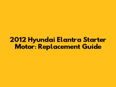 2012 Hyundai Elantra Starter Motor: Replacement Guide