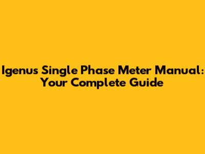 Igenus Single Phase Meter Manual: Your Complete Guide
