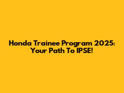 Honda Trainee Program 2025: Your Path To IPSE!