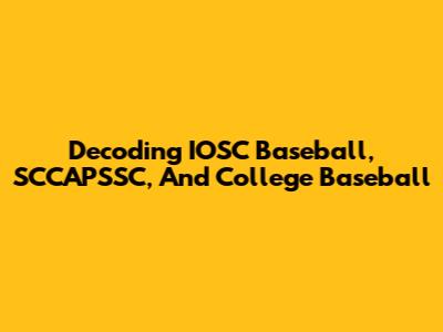 Decoding IOSC Baseball, SCCAPSSC, And College Baseball