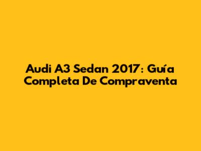 Audi A3 Sedan 2017: Guía Completa De Compraventa