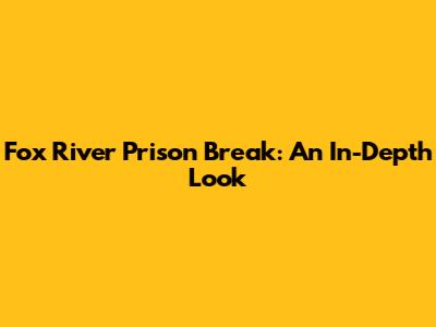 Fox River Prison Break: An In-Depth Look