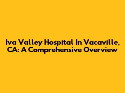 Iva Valley Hospital In Vacaville, CA: A Comprehensive Overview
