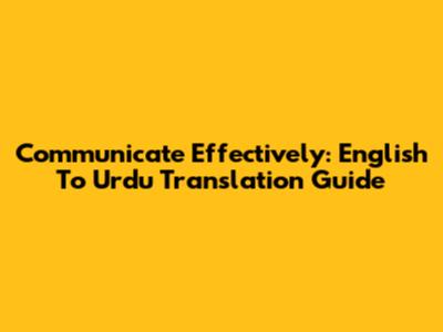 Communicate Effectively: English To Urdu Translation Guide