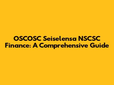 OSCOSC Seiselensa NSCSC Finance: A Comprehensive Guide