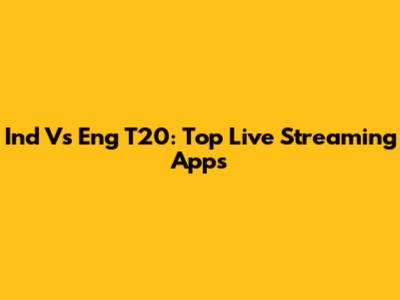 Ind Vs Eng T20: Top Live Streaming Apps