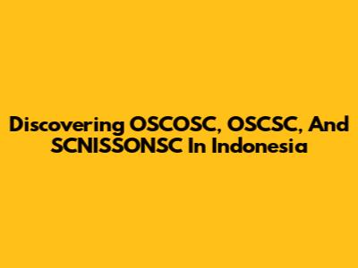 Discovering OSCOSC, OSCSC, And SCNISSONSC In Indonesia