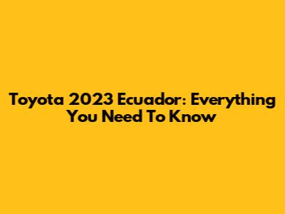 Toyota 2023 Ecuador: Everything You Need To Know
