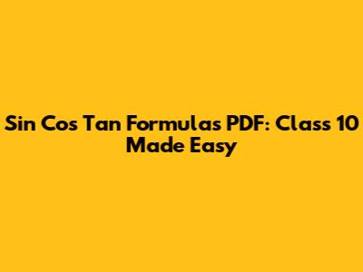 Sin Cos Tan Formulas PDF: Class 10 Made Easy