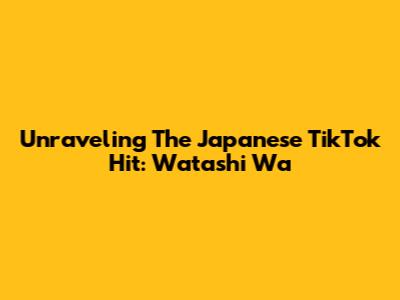 Unraveling The Japanese TikTok Hit: Watashi Wa
