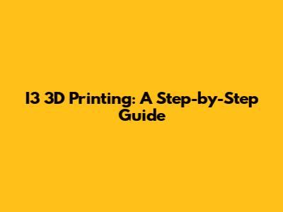 I3 3D Printing: A Step-by-Step Guide