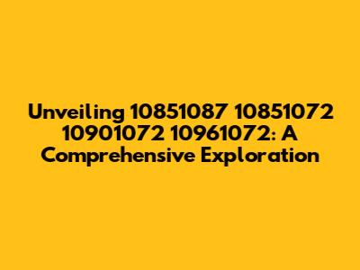 Unveiling 10851087 10851072 10901072 10961072: A Comprehensive Exploration