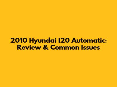 2010 Hyundai I20 Automatic: Review & Common Issues