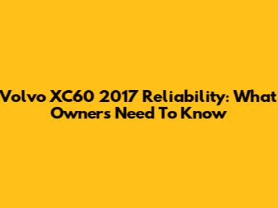 Volvo XC60 2017 Reliability: What Owners Need To Know