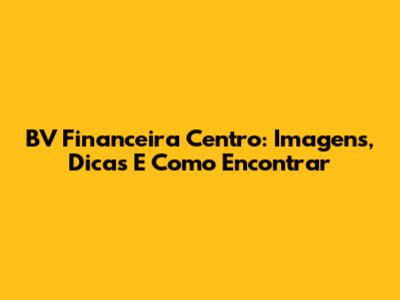 BV Financeira Centro: Imagens, Dicas E Como Encontrar