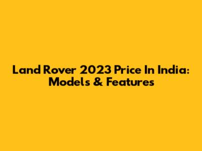 Land Rover 2023 Price In India: Models & Features