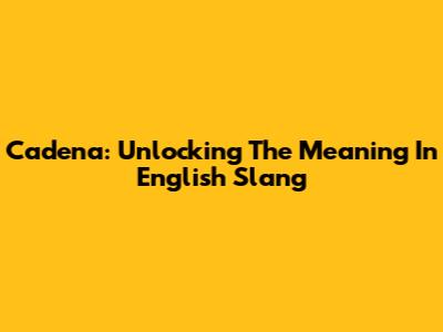 Cadena: Unlocking The Meaning In English Slang