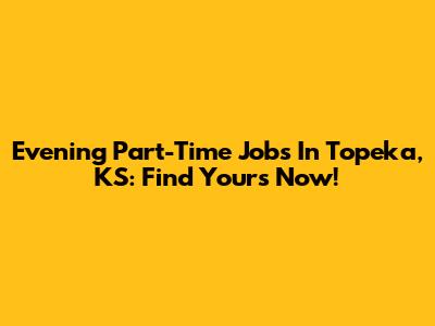 Evening Part-Time Jobs In Topeka, KS: Find Yours Now!