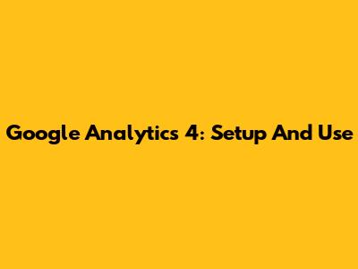 Google Analytics 4: Setup And Use