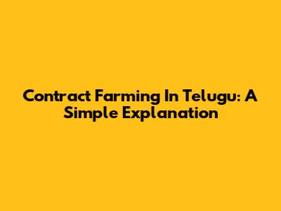Contract Farming In Telugu: A Simple Explanation