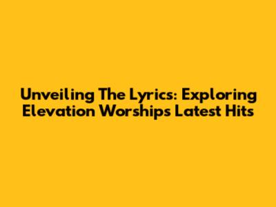 Unveiling The Lyrics: Exploring Elevation Worship's Latest Hits