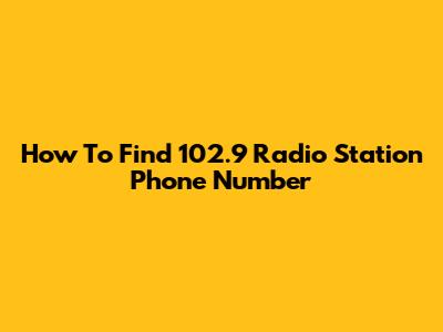 How To Find 102.9 Radio Station Phone Number