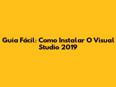Guia Fácil: Como Instalar O Visual Studio 2019