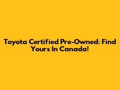 Toyota Certified Pre-Owned: Find Yours In Canada!